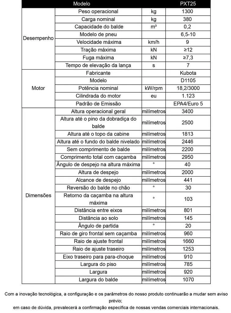 A minicarregadeira PXT é um tipo de máquina de construção multifuncional, utilizada principalmente para escavação, carregamento e transporte de materiais soltos, podendo substituir diversos acessórios por meio do dispositivo de troca rápida, proporcionando versatilidade, ampla aplicação e grande versatilidade. Adotando estrutura sobre rodas, é mais adequada para superfícies de estradas endurecidas do que o modelo sobre esteiras, considerando a mobilidade e a proteção da superfície da estrada.